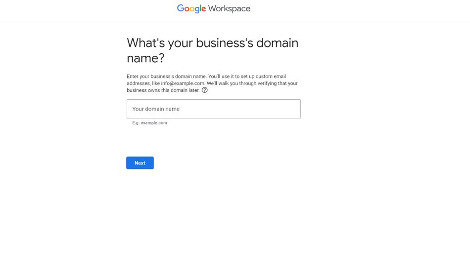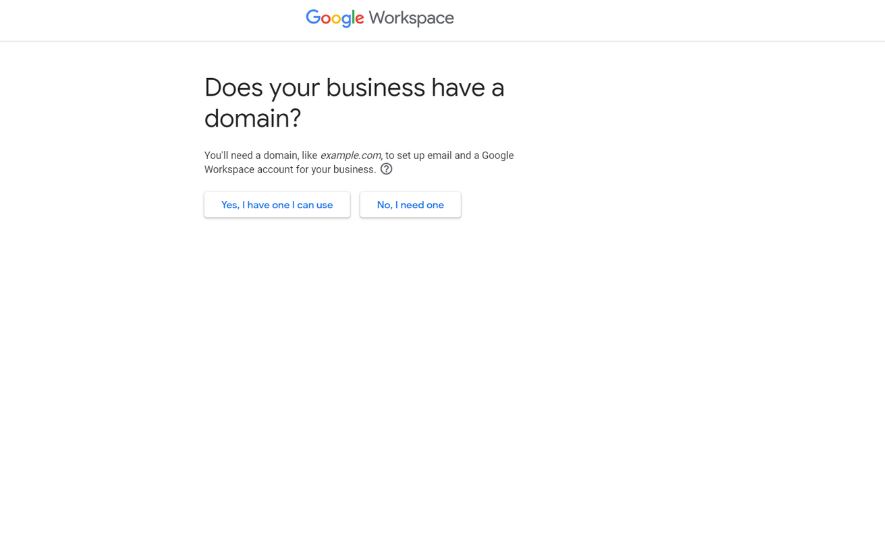 Sau khi thiết lập và sử dụng Google Workspace, nền tảng sẽ hỏi xem bạn có đang sở hữu tên miền hay không để lập mail mới với miền đó.