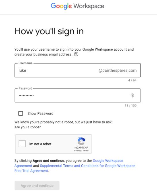 Bước tiếp theo trong hành trình cách lập mail mới trên điện thoại hoặc máy tính là chọn ra địa chỉ email và đặt mật khẩu. Hãy nhớ rằng địa chỉ mail được chọn cũng sẽ là tên người dùng Google được sử dụng trên các ứng dụng và dịch vụ của GG Workspace. Do đó, hãy dành chút thời gian để suy nghĩ về tên người dùng. Ngoài ra, tổ chức còn có thể lập mail mới cho các nhóm, chẳng hạn sales@abc.com hay marketing@abc.com.