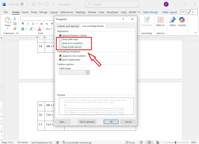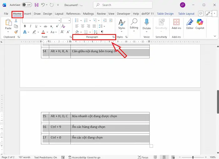 Nếu lỗi bảng trong Word bị nhảy trang vẫn còn dù đã chỉnh thuộc tính bảng, rất có thể vấn đề nằm ở các lệnh định dạng đoạn văn ẩn. Word có một số tính năng tự động nhằm giữ các đoạn văn đi liền nhau, vô tình gây ra lỗi ngắt trang không mong muốn. Hãy thực hiện cách chỉnh bảng trong Word bị nhảy trang sau để sửa lỗi một cách nhanh chóng: