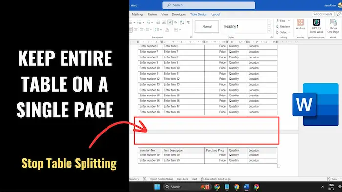 Tại sao bảng trong Word bị nhảy trang?