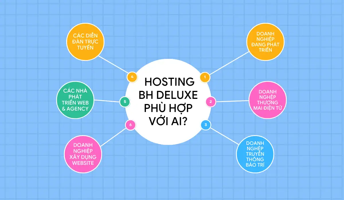 Gói Business Hosting BH Deluxe - 1 năm được thiết kế để đáp ứng nhu cầu cao hơn về hiệu suất, tài nguyên và khả năng quản lý cho các đối tượng doanh nghiệp và dự án trực tuyến sau: