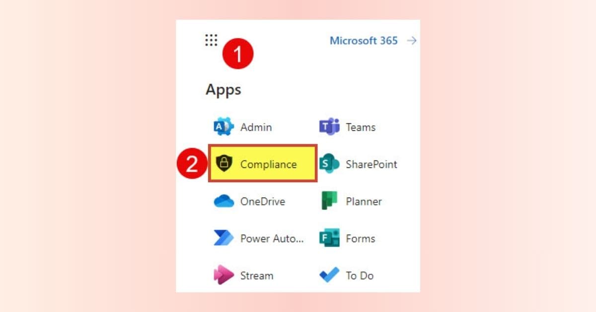 Từ trình khởi chạy ứng dụng Microsoft 365, bạn tìm và chọn biểu tượng Compliance (Tuân thủ) hoặc truy cập thẳng vào Microsoft Purview.