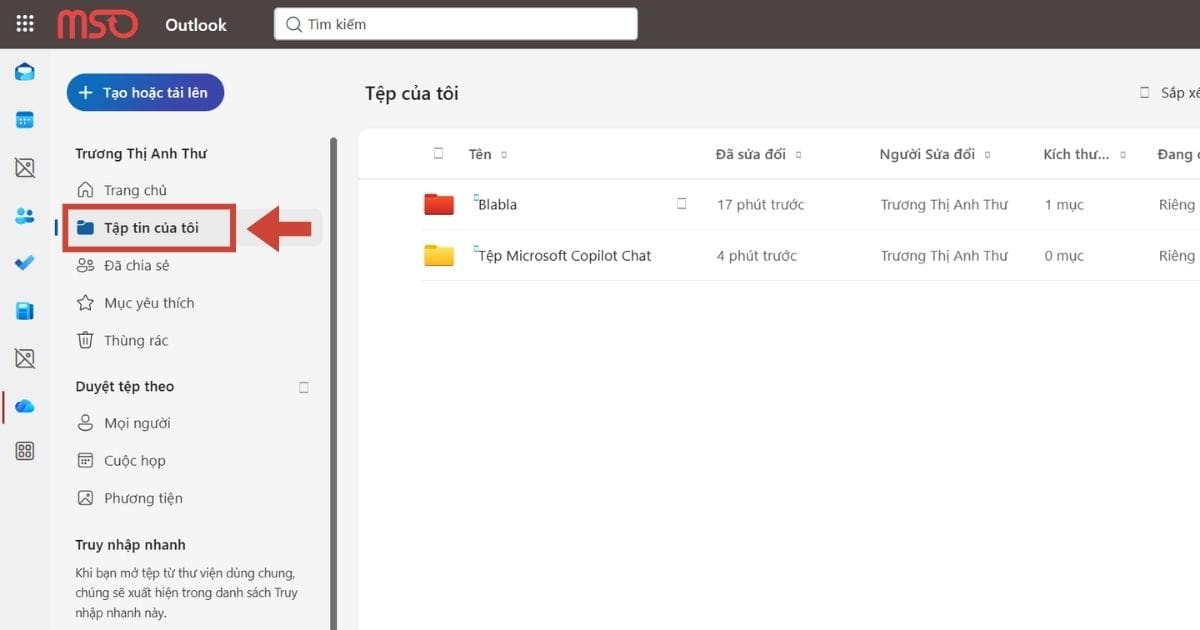 • Bước 2: Chọn mục Tập tin của tôi tại thanh menu bên trái.