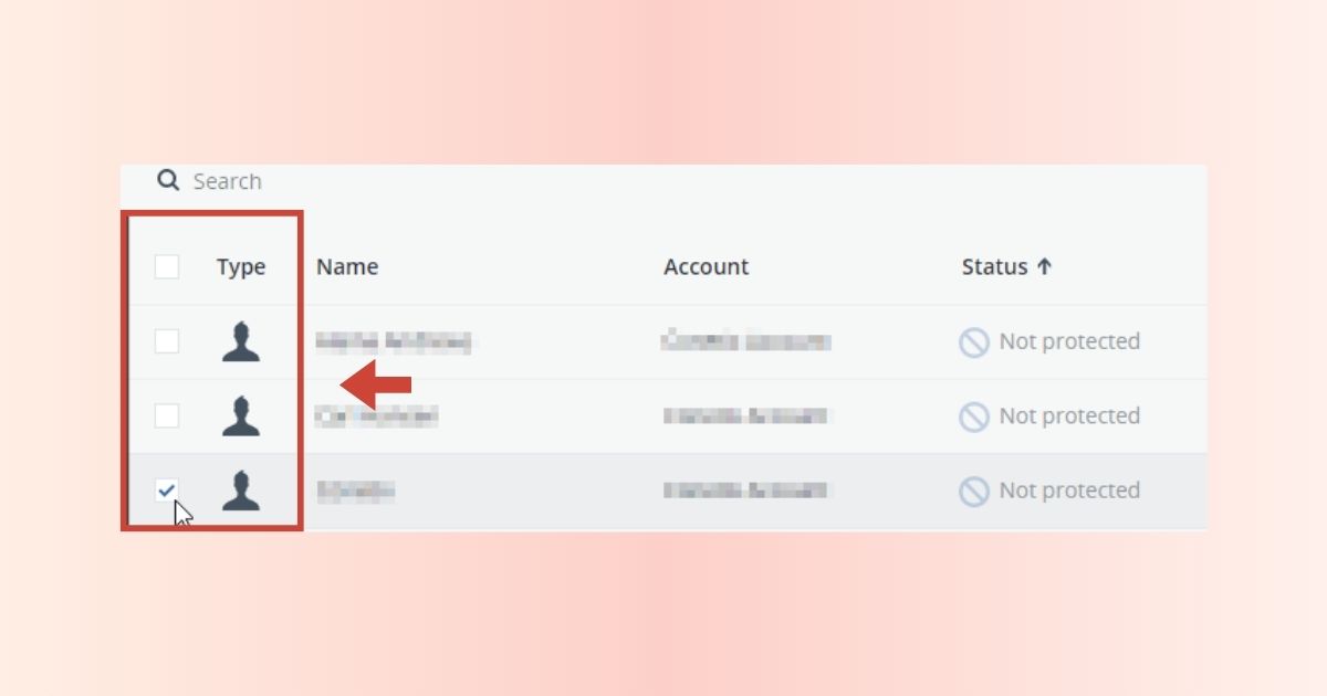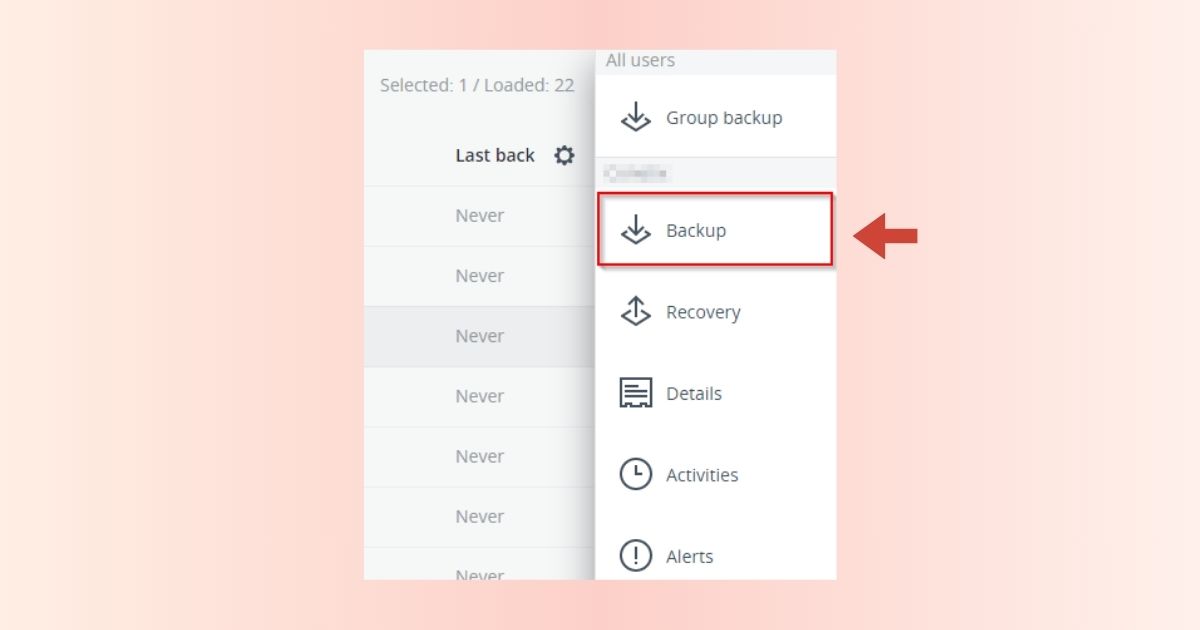Chọn những người dùng mà bạn muốn thực hiện sao lưu