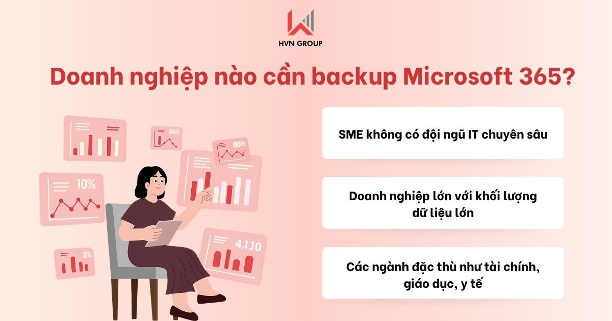 Hầu hết các tổ chức sử dụng Microsoft 365 đều cần triển khai backup. Tuy nhiên, mức độ cấp thiết sẽ đặc biệt cao với các nhóm doanh nghiệp sau:
