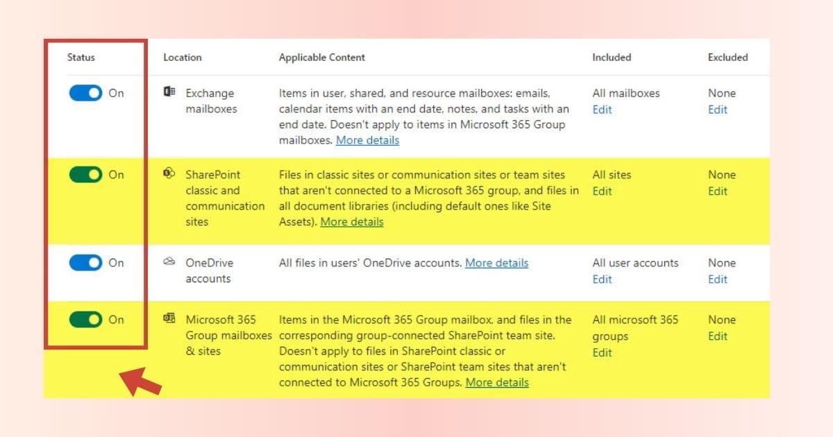 Microsoft 365 cung cấp một số tính năng hỗ trợ lưu trữ và bảo vệ dữ liệu như Retention Policy, cho phép lưu giữ dữ liệu trong một khoảng thời gian xác định ngay cả khi người dùng đã xóa dữ liệu đó. Nhiều doanh nghiệp thường tận dụng tình năng này như một giải pháp thay thế cho backup.