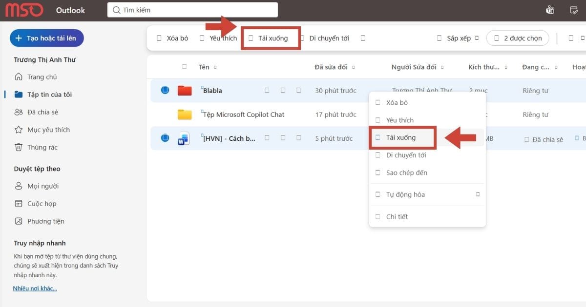 • Bước 4: Nhấn nút Tải xuống trên thanh công cụ phía trên cùng hoặc click chuột phải và chọn Tải xuống.