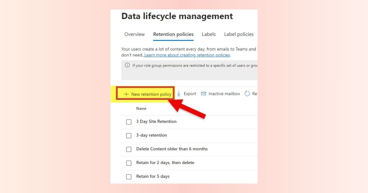 Nhấn vào nút + New retention policy (Chính sách lưu giữ mới).