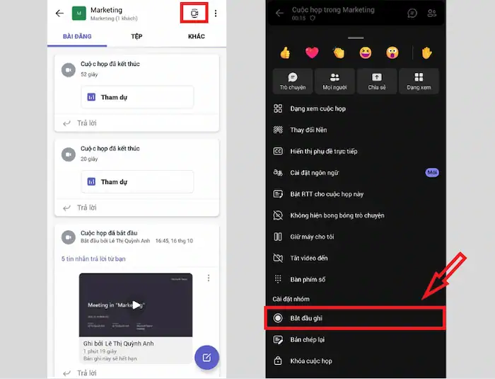*Lưu ý: Tính năng ghi lại cuộc họp Teams trên thiết bị di động có thể bị giới hạn tùy theo thiết bị, hệ điều hành và quyền truy cập của tài khoản.