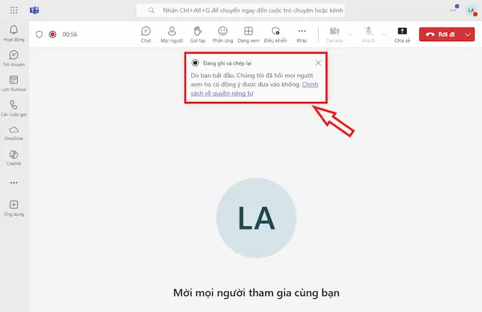 Khi ghi hình bắt đầu, tất cả người tham gia sẽ nhận được thông báo để đảm bảo minh bạch và tuân thủ quy định bảo mật.