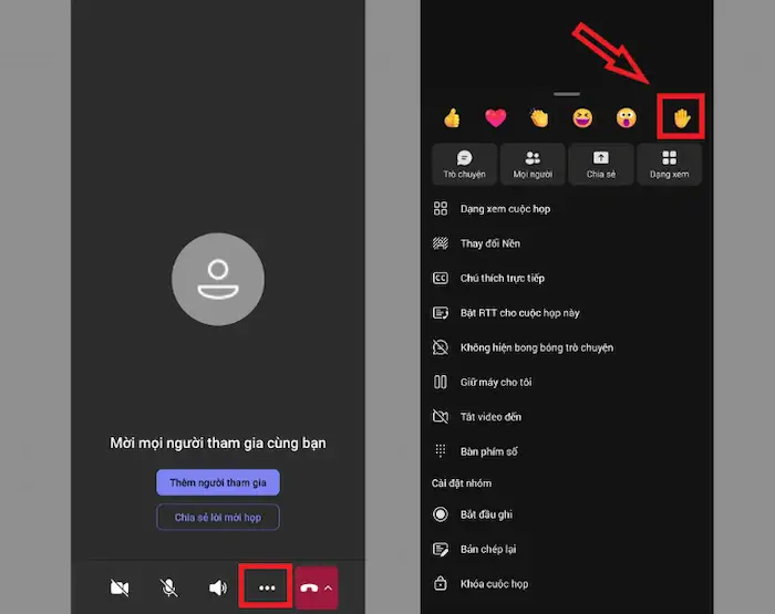 Cách giơ tay trên Microsoft Teams với điện thoại