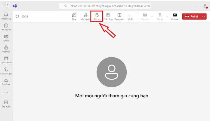 Giơ tay phát biểu trên Microsoft Teams web