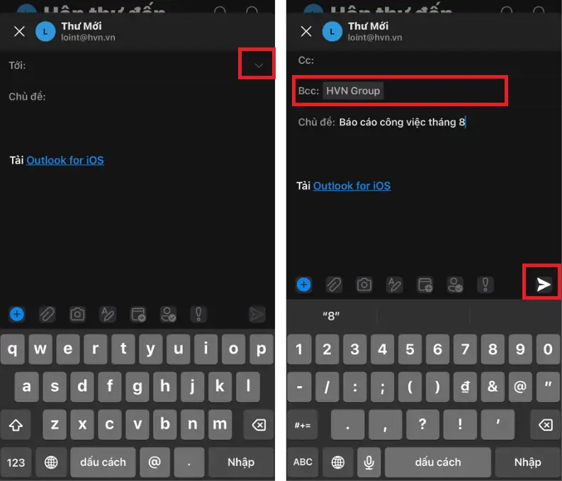 Cách gửi mail BCC trong Outlook trên thiết bị điện thoại
