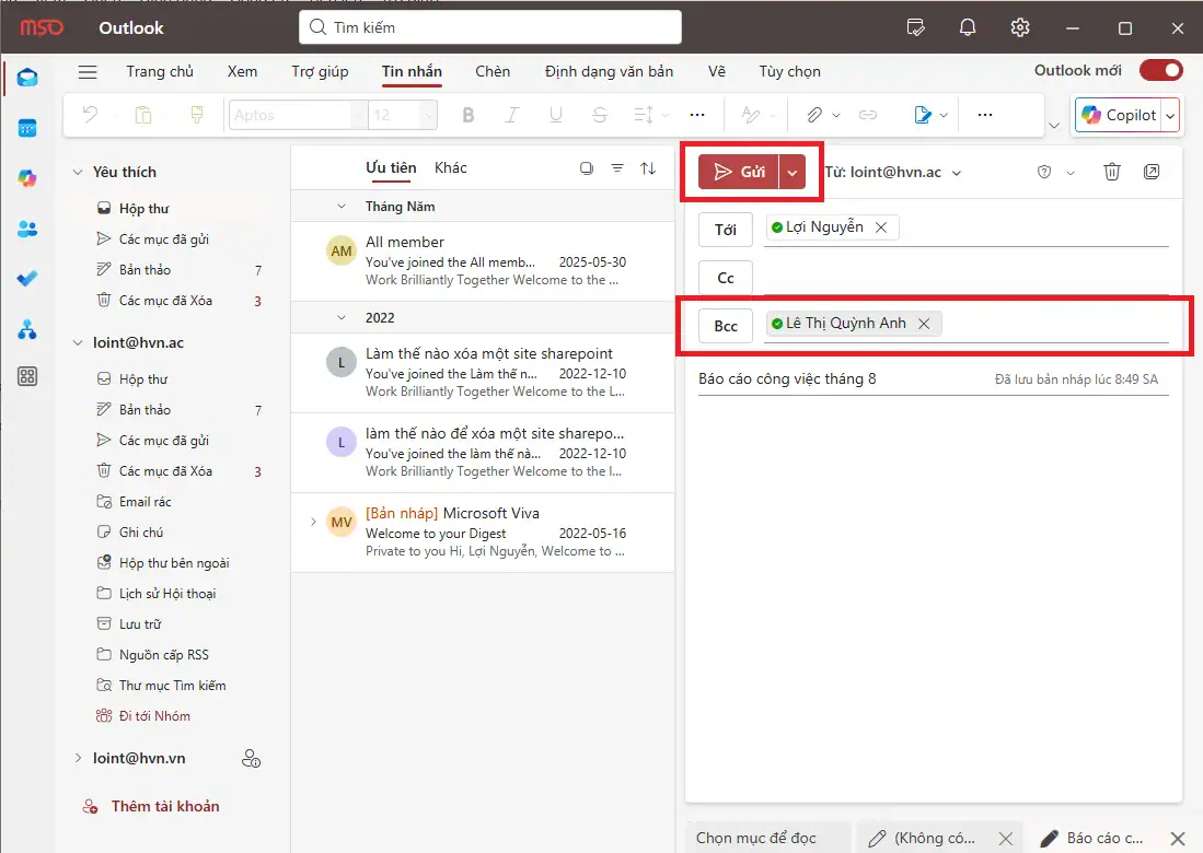 Như vậy, cách gửi mail BCC trên Outlook web rất đơn giản. Chỉ với vài cú nhấp chuột, bạn đã có thể bảo vệ danh tính của người nhận một cách hiệu quả.