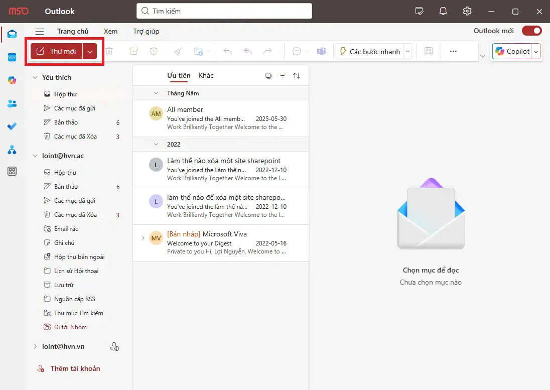 - Bước 1: Truy cập vào địa chỉ trang web outlook.com và tiến hành đăng nhập tài khoản của bạn. Nhấn vào nút “Thư mới” ở góc trên cùng bên trái để bắt đầu soạn email.