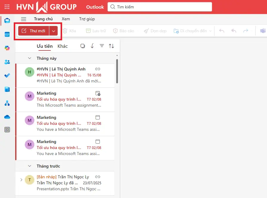 - Bước 1: Khởi động ứng dụng Outlook trên thiết bị máy tính của bạn. Nhấn vào “New Email” (Thư mới) để mở cửa sổ soạn thảo.