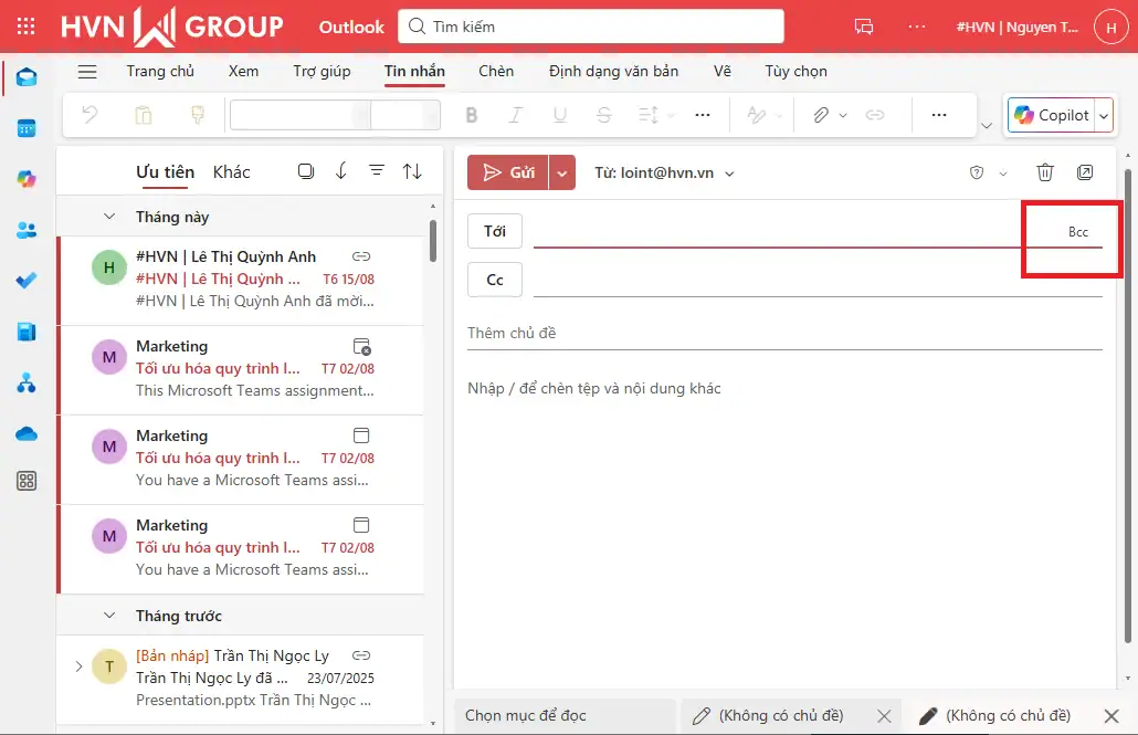 BCC trong Outlook là gì và khi nào nên dùng?