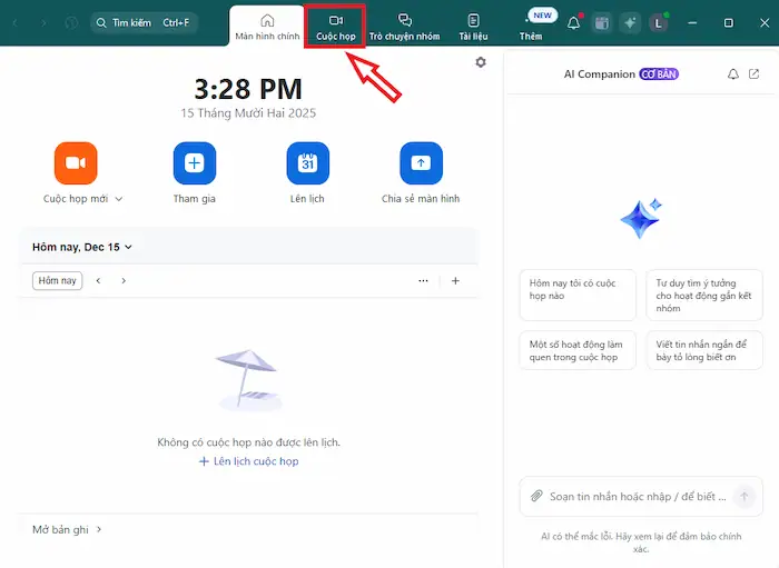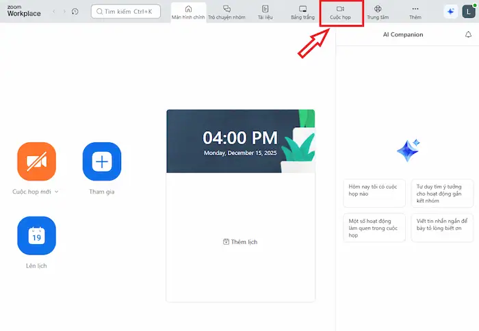 Bước 1: Truy cập mục Cuộc họp (Meetings)
