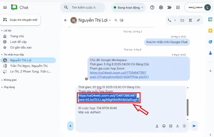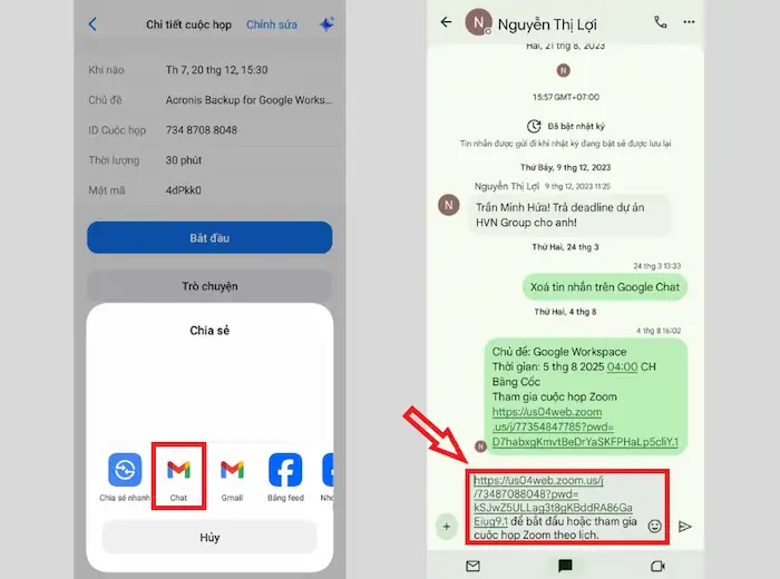 Tương tự như trên Desktop, bạn dán nội dung này vào nền tảng giao tiếp bạn muốn (Zalo, Viber, WhatsApp,…) và gửi đi. Người nhận có thể nhấp trực tiếp vào đường link để tham gia phòng họp.