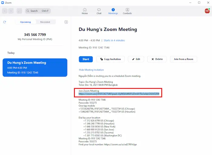 1. Lấy đường link trực tiếp từ ứng dụng Zoom trên Desktop