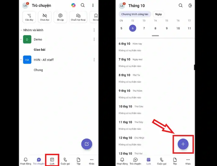 Nếu bạn đang sử dụng điện thoại di động để lên lịch cuộc họp trong Teams, cách thực hiện cũng rất đơn giản với các bước dưới đây: