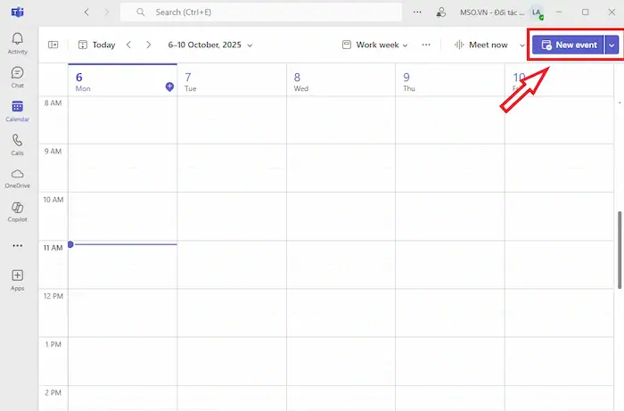 – Bước 3: Trong giao diện Lịch, bạn sẽ thấy nút New Meeting (Cuộc họp mới) ở góc phải phía trên, hãy nhấn vào đó để bắt đầu tạo cuộc họp mới.