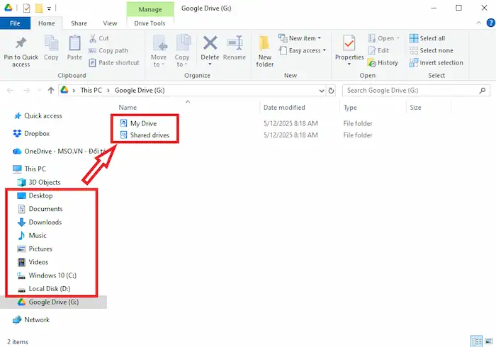 Sau khi thiết lập, một thư mục mới có tên Google Drive sẽ xuất hiện trong File Explorer (hoặc Finder trên Mac) của bạn. Bạn có thể bắt đầu kéo/thả tệp vào thư mục này để tải lên Drive hoặc mở các tệp đã có sẵn như thể chúng là tệp cục bộ trên máy tính.