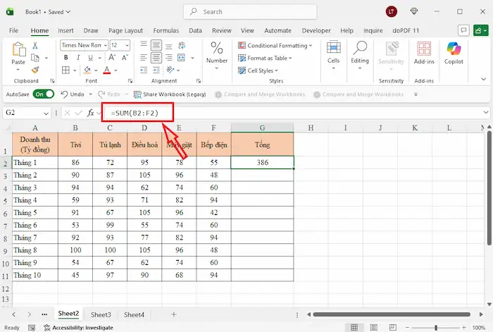 Cách 4: Sử dụng tính năng AutoSum trên thanh công cụ