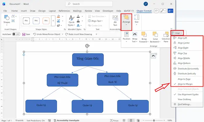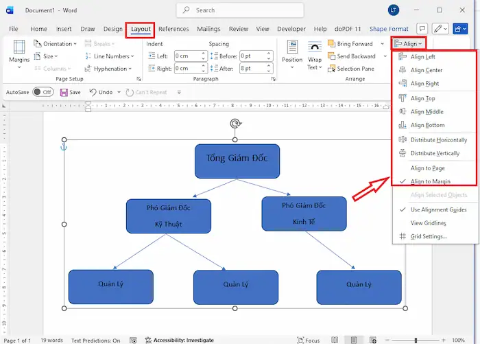 Sử Dụng Tính Năng Align để Căn Thẳng Hàng Khối Hình Khi Vẽ Sơ đồ Trong Word