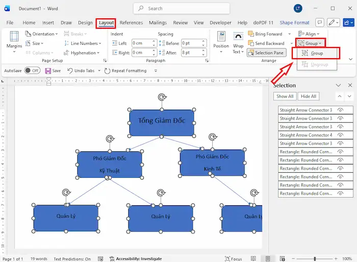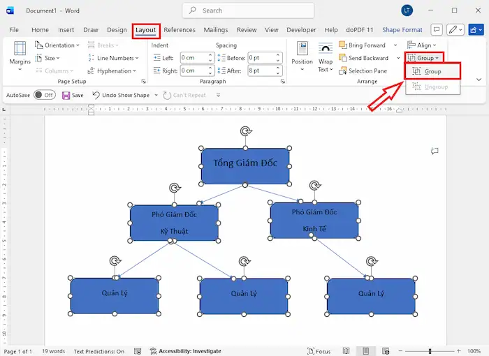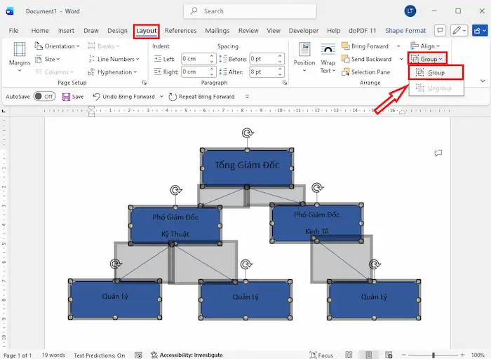 – Bước 4: Định dạng và nhóm (Group) sơ đồ