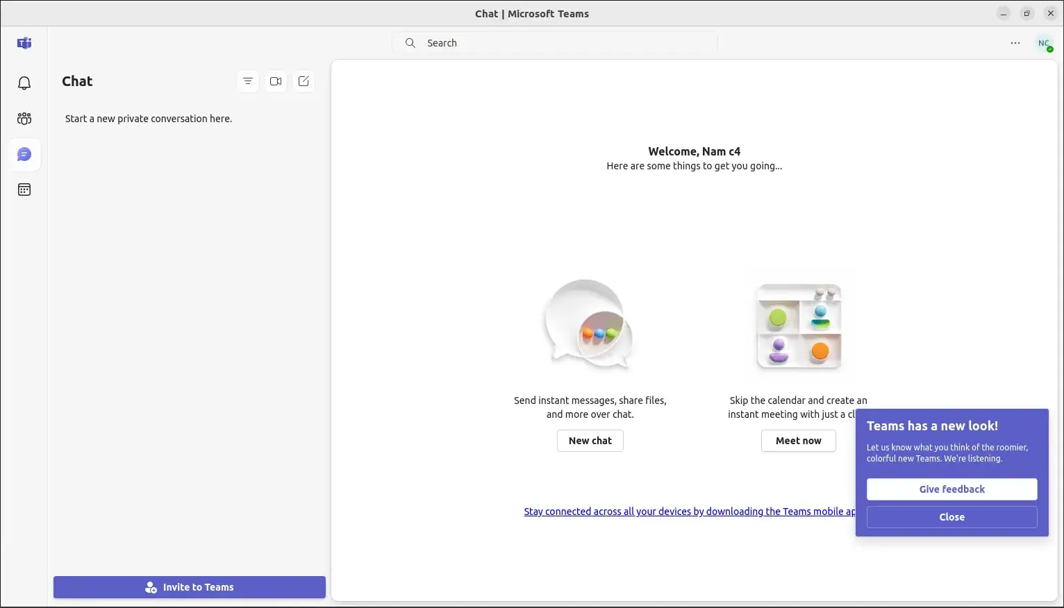 - Khởi chạy ứng dụng Microsoft Teams và bắt đầu sử dụng trên hệ thống Linux.