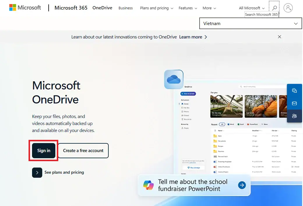 - Bước 1: Mở trình duyệt và truy cập OneDrive.com > Đăng nhập vào tài khoản OneDrive bản quyền của bạn.