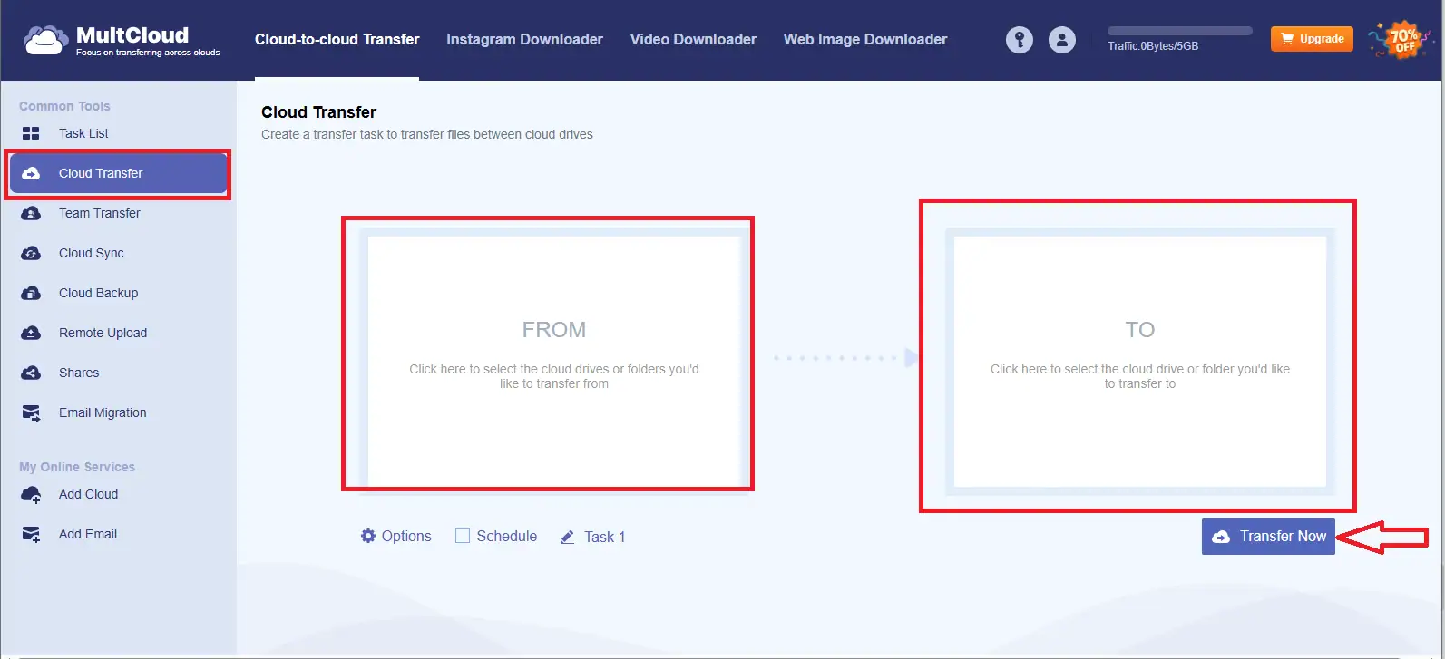 - Bước 4: Xác nhận bằng cách click chọn Transfer Now và bắt đầu quá trình. Dịch vụ sẽ thực hiện việc chuyển trực tiếp giữa hai dịch vụ đám mây trên máy chủ của họ.