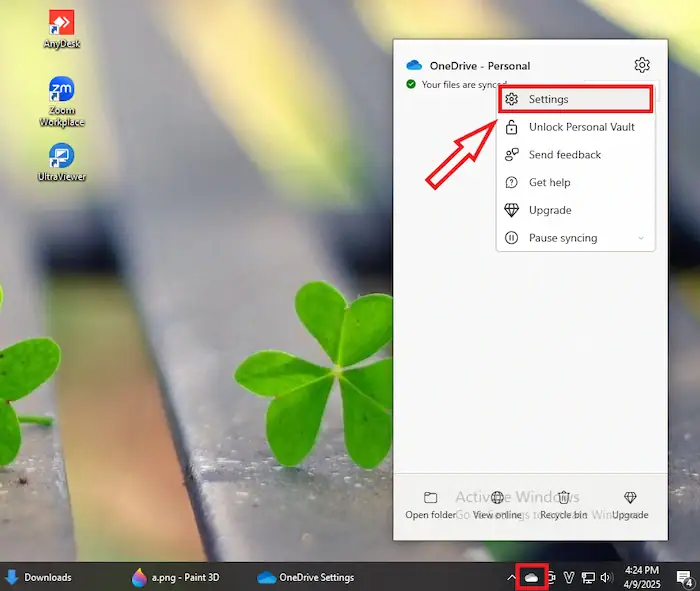 – Bước 1: Click chuột phải vào biểu tượng OneDrive trên thanh Taskbar (thường nằm ở góc dưới bên phải màn hình).