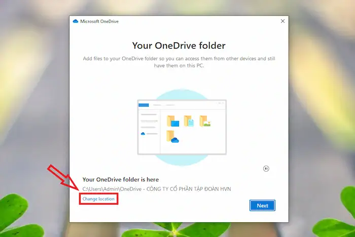 – Bước 3: Trong quá trình thiết lập, OneDrive sẽ hỏi bạn vị trí lưu trữ. Hãy nhấp chọn Change location (Thay đổi vị trí) và chọn thư mục OneDrive mà bạn vừa di chuyển sang ổ D.