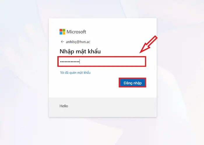 – Bước 5: Nếu bạn đăng nhập bằng tài khoản cơ quan/trường học, bạn có thể được yêu cầu nhập mật khẩu trên trang đăng nhập của tổ chức/trường học đó (có thể có bước xác minh hai yếu tố).