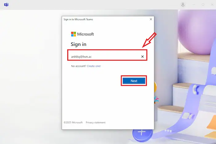Bạn không thể đăng nhập trực tiếp bằng tài khoản Gmail nếu tài khoản đó chưa được liên kết với hệ thống Microsoft. Tuy nhiên, nếu tổ chức của bạn đã cấp quyền truy cập Teams thông qua địa chỉ Gmail (thường là tài khoản Google Workspace tích hợp với Microsoft 365), bạn có thể đăng nhập sau khi được cấp quyền. Trong hầu hết trường hợp, bạn cần sử dụng tài khoản Microsoft chính thức (Outlook, Office 365, tài khoản doanh nghiệp hoặc trường học).