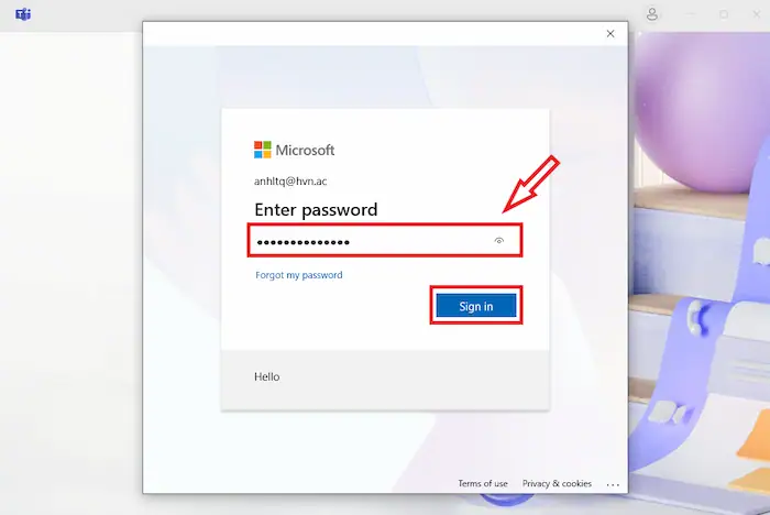 – Bước 4: Sau khi hoàn tất, quay lại Microsoft Teams và đăng nhập bằng mật khẩu mới.