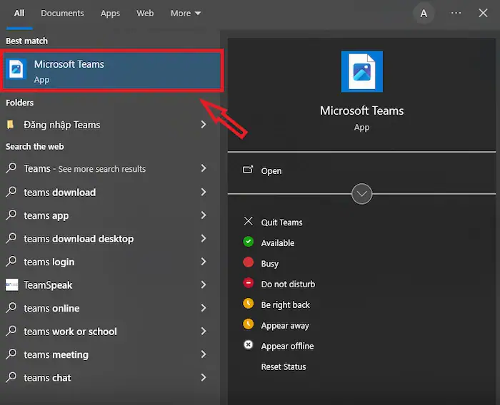 – Bước 2: Nhấn đúp chuột vào biểu tượng Microsoft Teams trên màn hình hoặc tìm kiếm trong menu Start để mở ứng dụng.