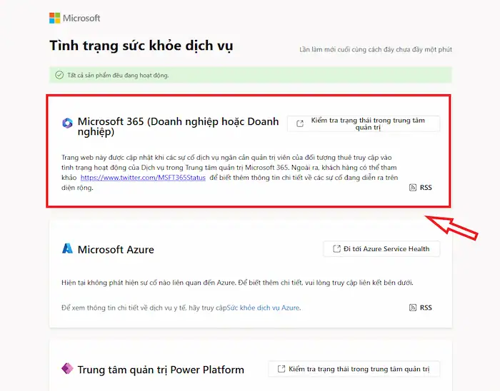 - Kiểm tra trạng thái dịch vụ Microsoft tại https://status.office.com.