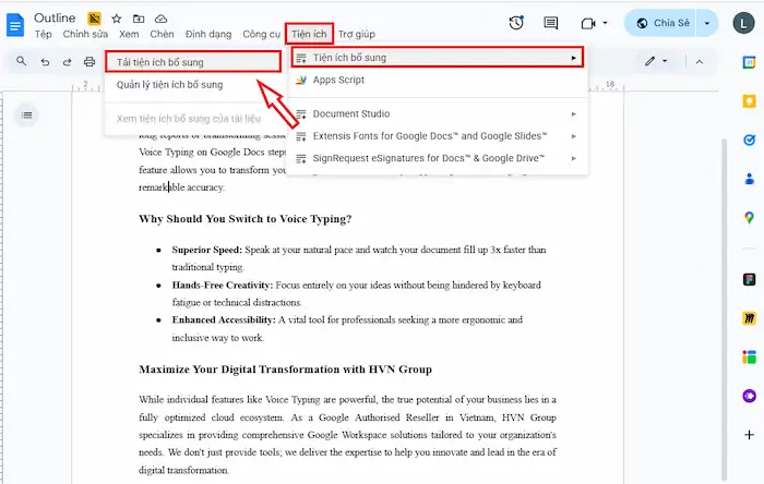 Bạn đang sở hữu một tài liệu dài hàng chục trang bằng tiếng nước ngoài và cảm thấy mệt mỏi khi phải copy-paste từng đoạn nhỏ vào công cụ dịch thuật? Đừng lo lắng, tính năng dịch văn bản bằng Google Docs chính là “chìa khóa” giúp bạn giải quyết vấn đề này chỉ trong vài giây. Trong bài viết này, HVN Group sẽ hướng dẫn chi tiết cách sử dụng tính năng dịch thuật trên Google Docs từ A-Z, giúp bạn xử lý mọi loại tài liệu đa ngôn ngữ một cách chuyên nghiệp nhất.