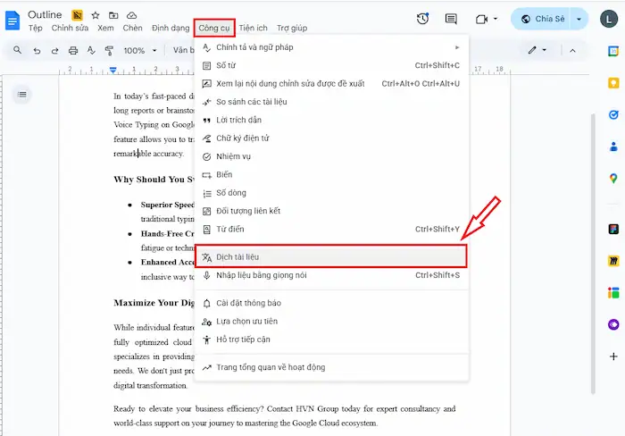 Hướng dẫn cách dịch văn bản bằng Google Docs chi tiết nhất