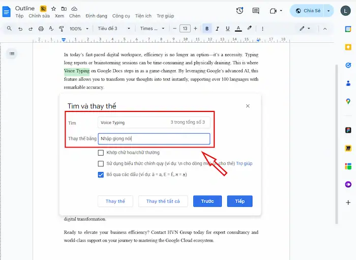 - Rà soát các danh từ riêng: Đôi khi Google sẽ tự động dịch cả tên riêng của người hoặc địa danh nếu chúng có nghĩa trong từ điển. Hãy dùng tính năng Tìm kiếm và Thay thế để đưa chúng về đúng tên gốc.