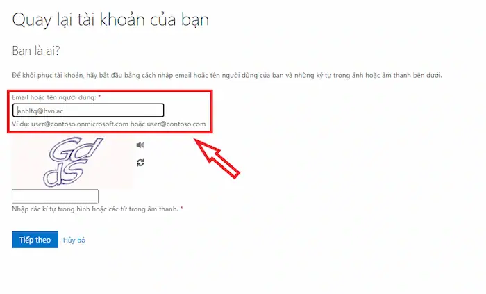 Bước 3: Thực hiện theo các bước hướng dẫn >> Microsoft sẽ gửi mã xác minh đến email hoặc số điện thoại bạn đã đăng ký trước đó.