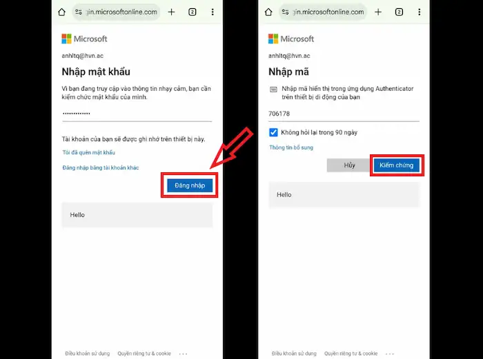 Bước 3: Đăng nhập vào tài khoản Microsoft bằng địa chỉ email và mật khẩu hiện tại >> thực hiện việc kiểm chứng (nếu có).