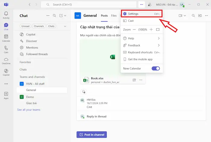 Bước 2: Tại màn hình chính của Teams, nhấp vào biểu tượng dấu ba chấm ở góc trên bên phải.