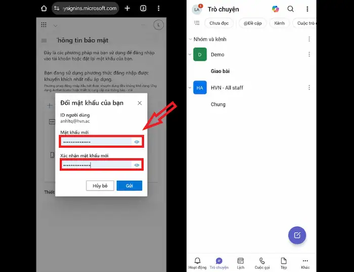 Đổi Mật Khẩu ứng Dụng Teams Di động
