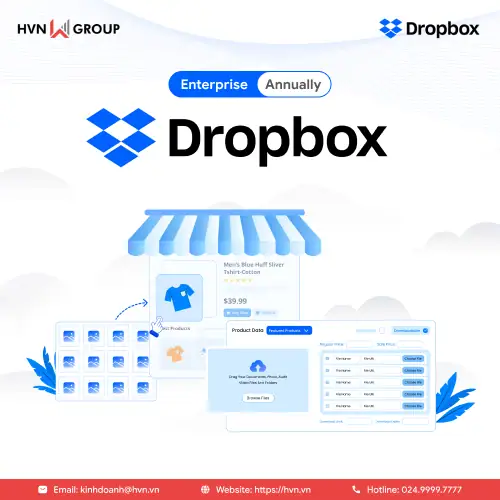 Giá của Dropbox Enterprise – Annually không được niêm yết công khai vì còn phụ thuộc vào số lượng người dùng, nhu cầu tính năng, hỗ trợ kỹ thuật và yêu cầu tùy chỉnh theo từng doanh nghiệp. Bạn có thể liên hệ trực tiếp đối tác HVN Group qua Hotline 024.9999.7777 để nhận báo giá phù hợp.