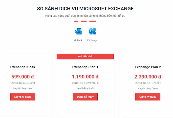 - Exchange Online (Độc lập): Gói đăng ký dành cho doanh nghiệp chỉ cần dịch vụ email chuyên nghiệp: