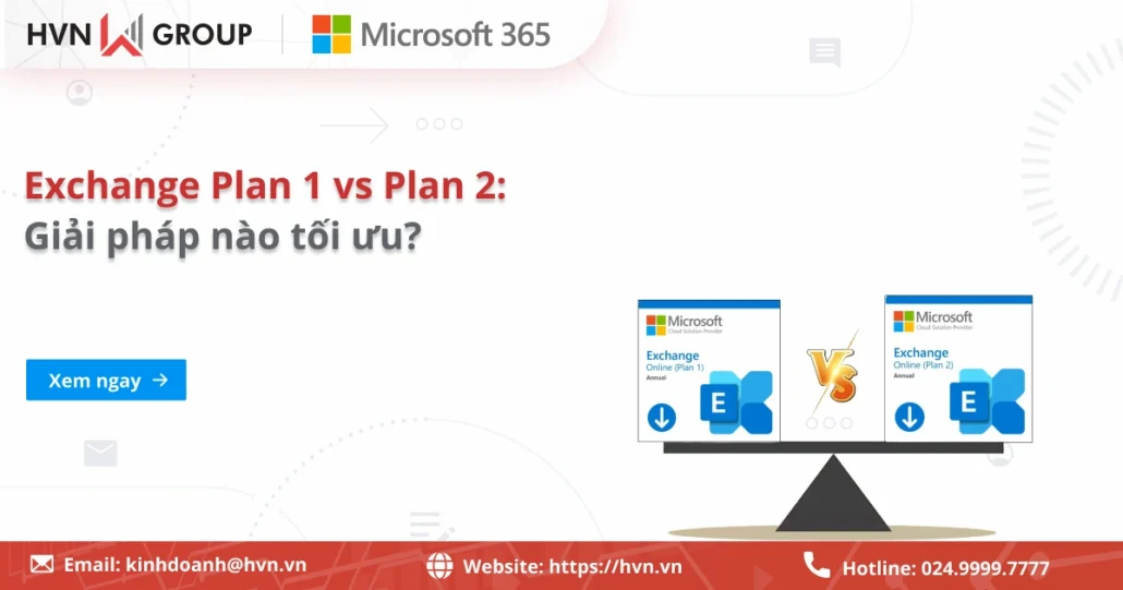 Đăng ký Exchange Online Plan 1 hoặc Exchange Online Plan 2 chính hãng tại HVN Group để được tư vấn, hỗ trợ triển khai và xuất hóa đơn nhanh chóng ngay hôm nay.